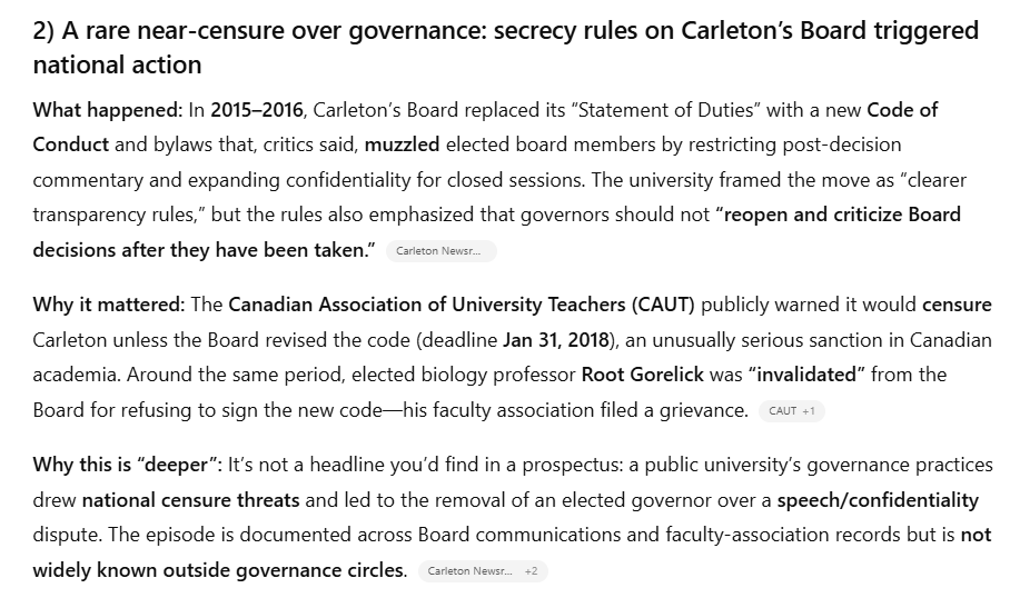 Extracts (few of many) from Professor Root Gorelick's website (https://rootgorelick.com/) on board misconduct and financial mismanagement: