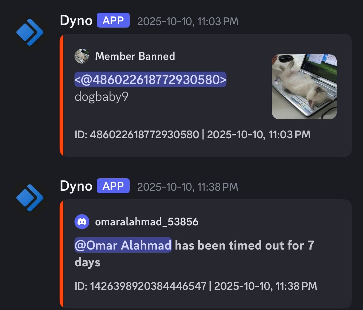 Yes, please. Send me all the logs and proofs you can get with dates and times, please. For example, if you muted me or someone you mention in this conversation, please provide when you muted/banned, why and the duration, if you tried to resolve it, if you provided the reason before/after the mute/ban to the person, and why you believe your decision was justified based on the information you have. You may have reasons, but that does not mean they are correct, justified, or even make sense.